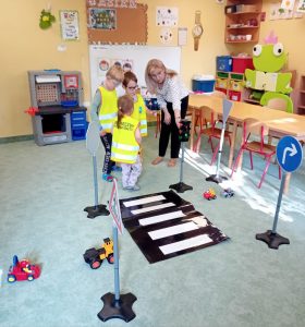 poboczu. W trakcie zabawy poznały znaczenie sygnalizacji świetlnej – jej barw oraz symbolikę