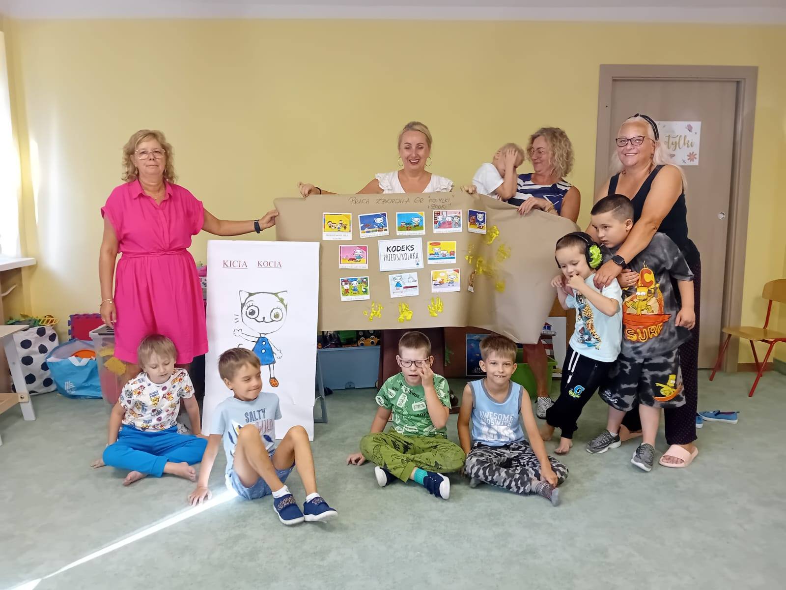 „Kodeks Przedszkolaka z Kicią Kocią” Grupa Motylki 🦋,Żabki 🐸i Ważki – „Kodeks Przedszkolaka z Kicią Kocią” 🐱✨ Po wakacyjnej przerwie 🌞🏖️ dzieci wróciły do przedszkola