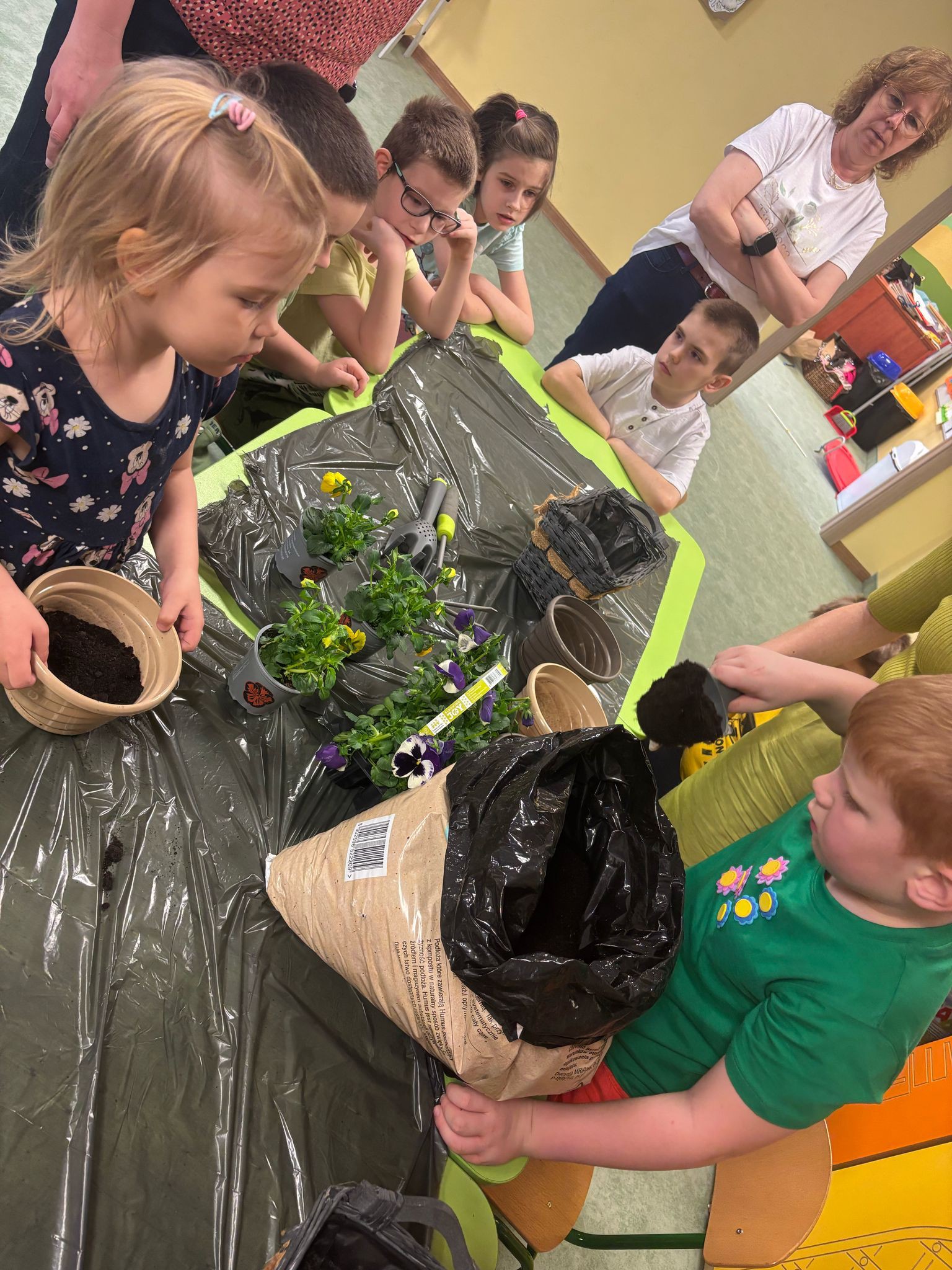 Bratki posadzone Grupy Żabki, Motylki i Ważki posadziły piękne bratki do swoich kącików przyrodniczych. Wiosna zawitała już na stałe u nas