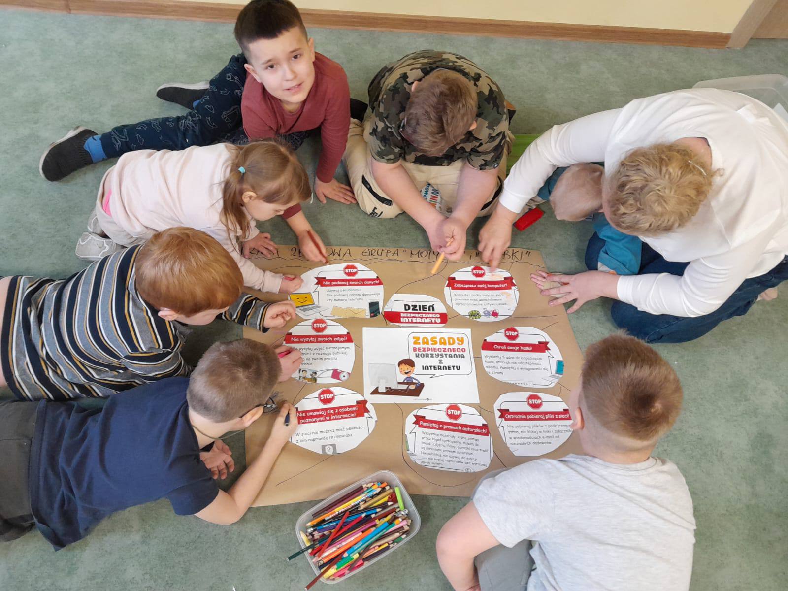 Dzień bezpiecznego internetu. Nasze przedszkolaki z Grupy Motylki i Żabki zapoznały się z zasadami korzystania z Internetu. Wykonały szereg zadań i ćwiczeń, a także wykorzystały