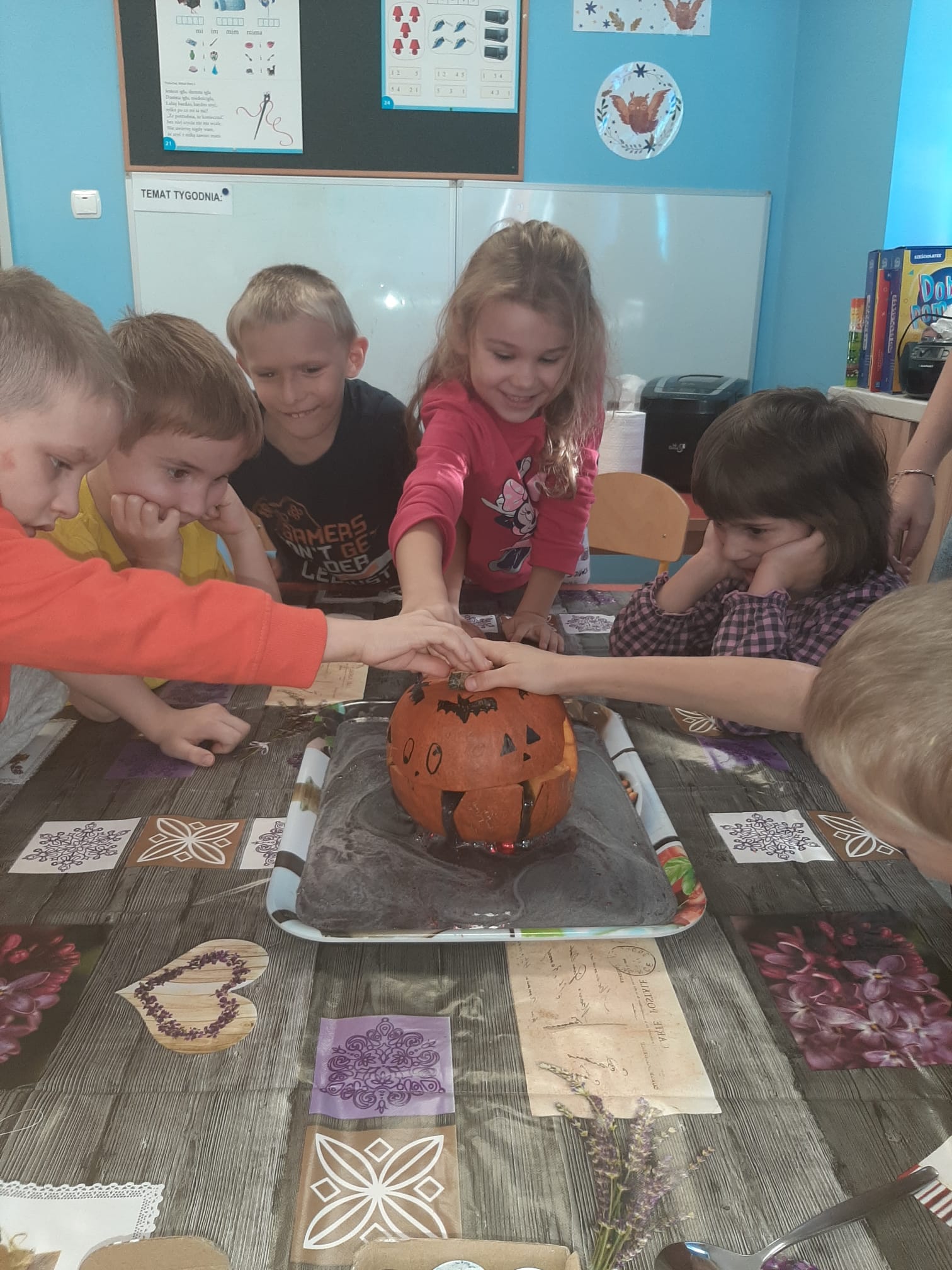 Dzień Dyni Pod koniec października w naszym przedszkolu odbył się Dzień Dyni. Wspólnie uczestniczyliśmy w zajęciach, podczas których poznaliśmy bardzo zdrowe i urodziwe warzywo jakim
