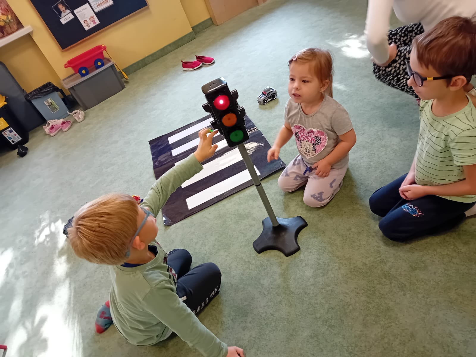„Bezpieczny przedszkolak” W ramach innowacji pedagogicznej „Bezpieczny Przedszkolak” dzieci z grupy Pszczółki poznawały zasady bezpiecznego przechodzenia przez jezdnię, poruszania się po chodniku i poboczu. W