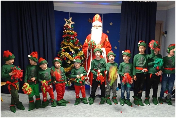 Dzisiaj nasze przedszkole zmieniło się w „Gród skrzatów,” do którego zawitał Św. Mikołaj ze swoimi pomocnikami. Najpierw skrzaty musiały długo czekać na Mikołaja i strasznie