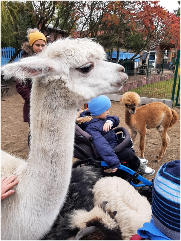 Dziś w przedszkolu duża sprawa. Do zagrody jest wyprawa, gdzie ujrzymy dziś alpaki Bardzo puchate zwierzaki. Kózki i króliki skaczą, bo dzieciaki je zobaczą. Pogłaskają,
