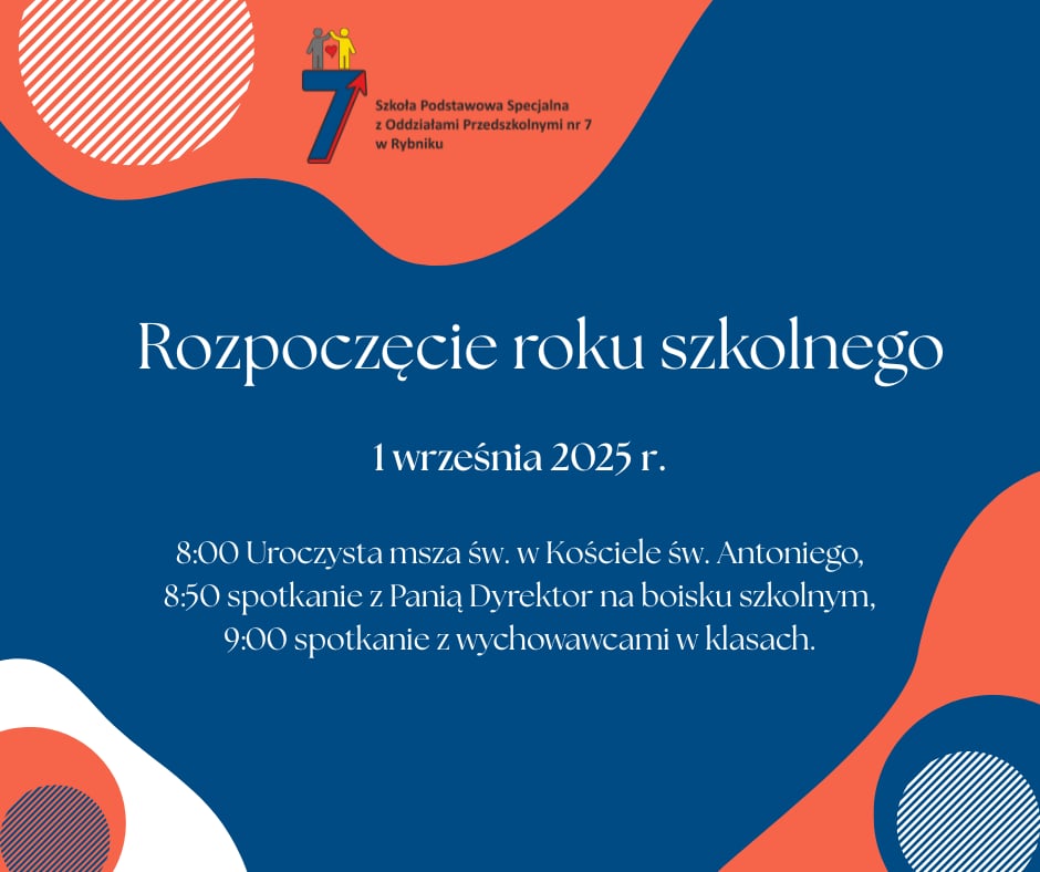 Rozpoczęcie Roku Szkolnego 2024/2025 2 września 2024 Msza Święta o godz. 8.00 w Kościele św. Antoniego, 9.00 spotkanie z panią Dyrektora na boisku szkolnym (