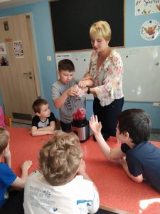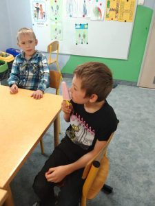 W grupach Sówki, Mrówki, Pszczółki odbyły się zajęcia na temat domowych deserów. Dzieci zrobiły samodzielnie lody z kilku prostych składników.