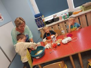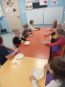 W grupach ,,Mrówki i Sówki ” dzieci na jesienną nudę spędziły ze sobą czas na ciekawych aktywności. Upiekliśmy razem muffinki z jabłkami w ramach innowacji pedagogicznej ,,Mały kucharz „. Dzieci poznały się podczas zabaw integracyjnych, które sprawiły nam wielką radość.