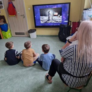 15 stycznia Żabki wróciły do kosmicznych tematów. Dzień wcześniej podczas zajęć dzieci poznały książeczkę „Kicia Kocia w kosmosie”, a tym razem stworzyły prawdziwie kosmiczny klimat. Przyjrzały się bliżej zawodowi astronauty, obejrzały film edukacyjny oraz z zainteresowaniem słuchały kosmicznych ciekawostek.