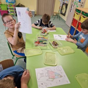 Na zakończenie spróbowały swoich sił w rysowaniu rakiety według filmu instruktażowego.