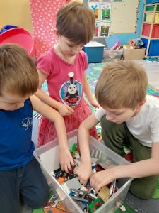 poznały historię stworzenia klocków lego, z których na koniec zajęć zbudowały wspaniałe budowle.![]()