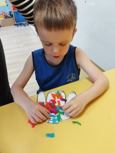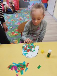 wspólnie wykonały pracę plastyczną. ” norweski sweterek”,