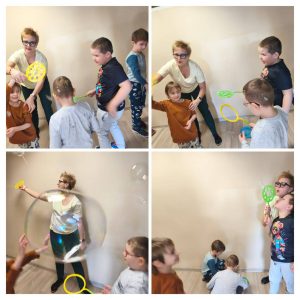 🧼 Wypełniliśmy cały korytarz bańkami! Zabawa w puszczanie i łapanie baniek na dużej przestrzeni była prawdziwym hitem dnia.