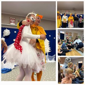 W przedstawieniu „Brzydkie Kaczątko” brały udział Oddziały Przedszkolne ze Szkoły Podstawowej Specjalnej nr 7 w Rybniku, a na scenie występowały razem nauczycielki z Przedszkola nr 19 w Rybniku oraz z oddziałów przedszkolnych w SPS 7.🎭🦆.